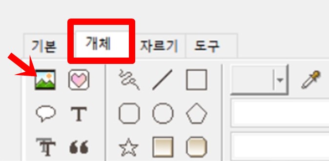 [개체]를 터치한다. 사진 모양을 터치한다.