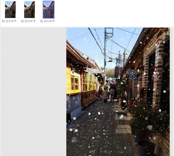 다시 눈 내리는 사진을 조금씩 내리면서 위의 방법으로 4번 정도 다른 이름으로 저장한다.