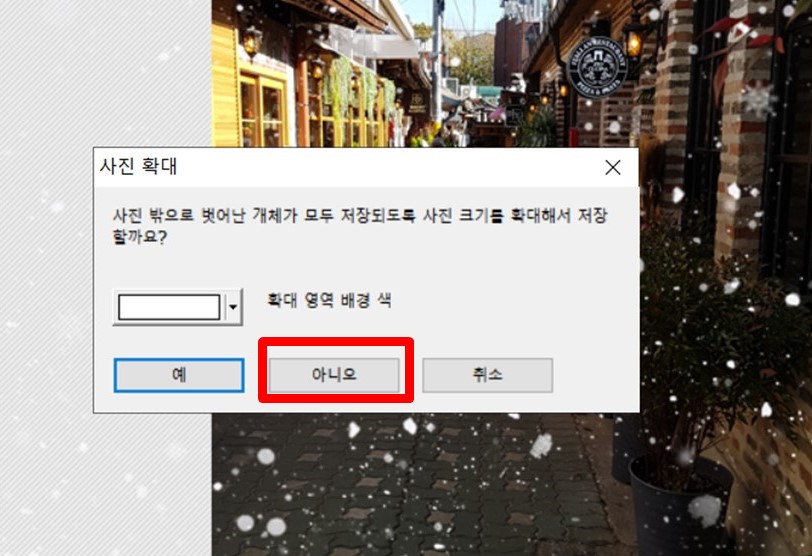 그리고 눈이 내리는 PNG 사진을 가져온다. [확인]을 누른다.