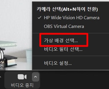 [가상 배경 선택]을 누른다.