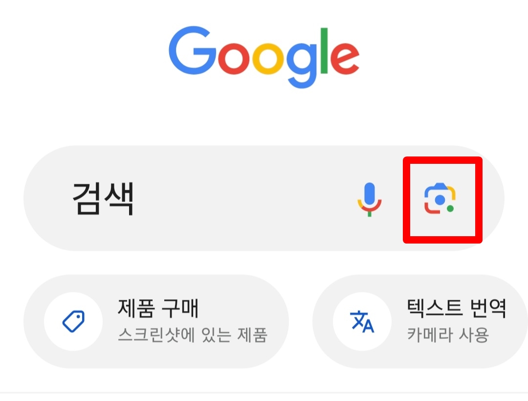 구글을 열면 상단에 카메라 모양이 보인다. 이를 터치하면 구글 렌즈 검색이 열린다.